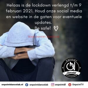 Helaas is de lockdown verlengd t/m 9 februari 2021. Houd onze social media en website in de gaten voor eventuele updates. Be safe!